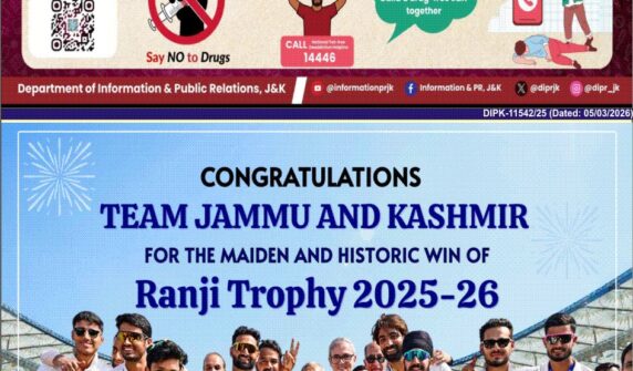 پریم چنداور کبیرکاادبی سرمایہ ہندوستانی تہذیب کابیش قیمت ورثہ: پروفیسر مظہر آصف جموں و کشمیر کے بند سیاحتی مقامات دوبارہ کھولنے کا وقت آ گیا ہے: عمر عبداللہ بجٹ اجلاس 2026: ترقی، شفافیت اور عوامی سہولیات پر حکومت کا عزم مولوی عمر فاروق ۔۔۔ کشمیر کے سیاسی صحراؤں میں صحرانوردیاں ! ۱۳جولائی، یوم شہدائے کشمیر ۔ ہنگامہ ہے کیوں برپا؟ ڈاکٹر شہزداہ سلیم کا سماجیاتی مطالعہ۔۔۔’’اگر میں زندہ ہوتی‘‘ کے حوالے سے 1.59 لاکھ روپے کے سولر روف ٹاپ پر85800 روپے کی سبسڈی / (کے پی ڈِی سی ایل) کشمیری فلم ساز مشتاق علی احمد خان کی”NCIFF” میں شرکت  رائٹرس فورم جموں کے زیراہتمام پُروقارتقریب گورنمنٹ ڈگری کالج برائے طالبات نواکدل سرینگر میں بدعنوانی کے خلاف ایک پروگرام کا انعقاد