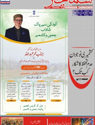 پریم چنداور کبیرکاادبی سرمایہ ہندوستانی تہذیب کابیش قیمت ورثہ: پروفیسر مظہر آصف جموں و کشمیر کے بند سیاحتی مقامات دوبارہ کھولنے کا وقت آ گیا ہے: عمر عبداللہ بجٹ اجلاس 2026: ترقی، شفافیت اور عوامی سہولیات پر حکومت کا عزم مولوی عمر فاروق ۔۔۔ کشمیر کے سیاسی صحراؤں میں صحرانوردیاں ! ۱۳جولائی، یوم شہدائے کشمیر ۔ ہنگامہ ہے کیوں برپا؟ ڈاکٹر شہزداہ سلیم کا سماجیاتی مطالعہ۔۔۔’’اگر میں زندہ ہوتی‘‘ کے حوالے سے 1.59 لاکھ روپے کے سولر روف ٹاپ پر85800 روپے کی سبسڈی / (کے پی ڈِی سی ایل) کشمیری فلم ساز مشتاق علی احمد خان کی”NCIFF” میں شرکت  رائٹرس فورم جموں کے زیراہتمام پُروقارتقریب گورنمنٹ ڈگری کالج برائے طالبات نواکدل سرینگر میں بدعنوانی کے خلاف ایک پروگرام کا انعقاد
